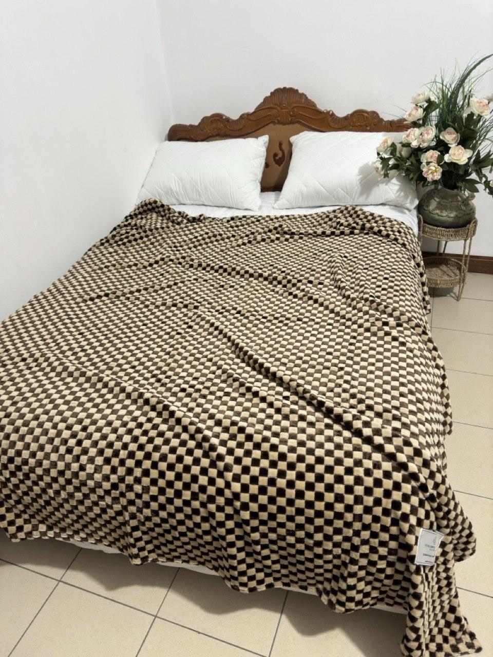 Велюровий плед "Шахатка" 200х220/Покривало в квадратик