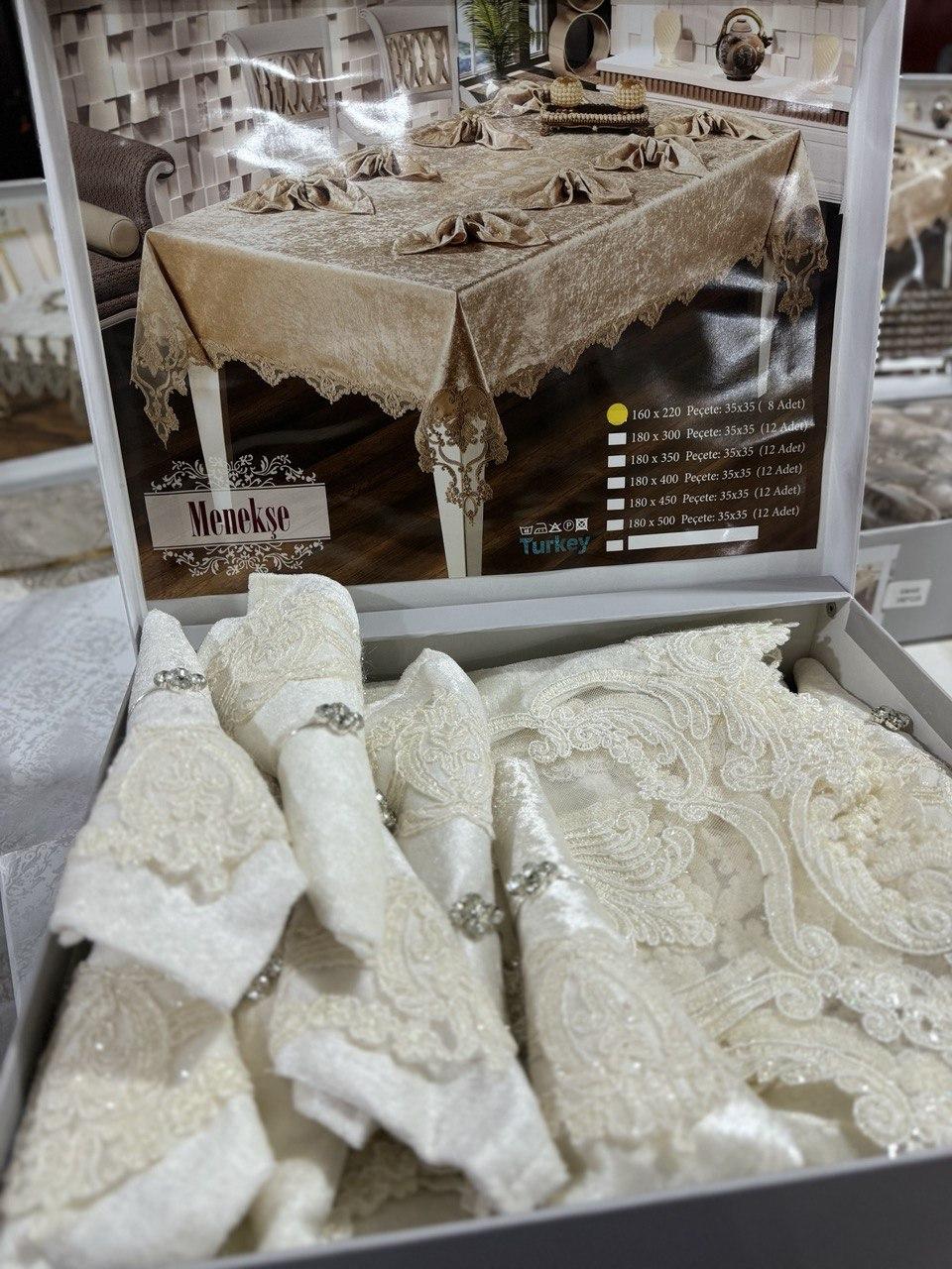 Скатертина подарункова велюрова із серветками на розкладний стіл 160*200