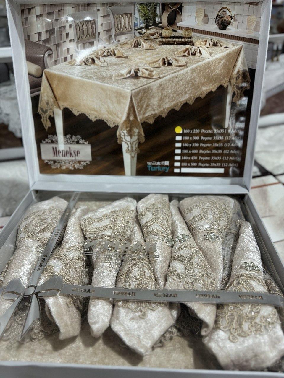 Скатертина подарункова велюрова із серветками на розкладний стіл 160*220