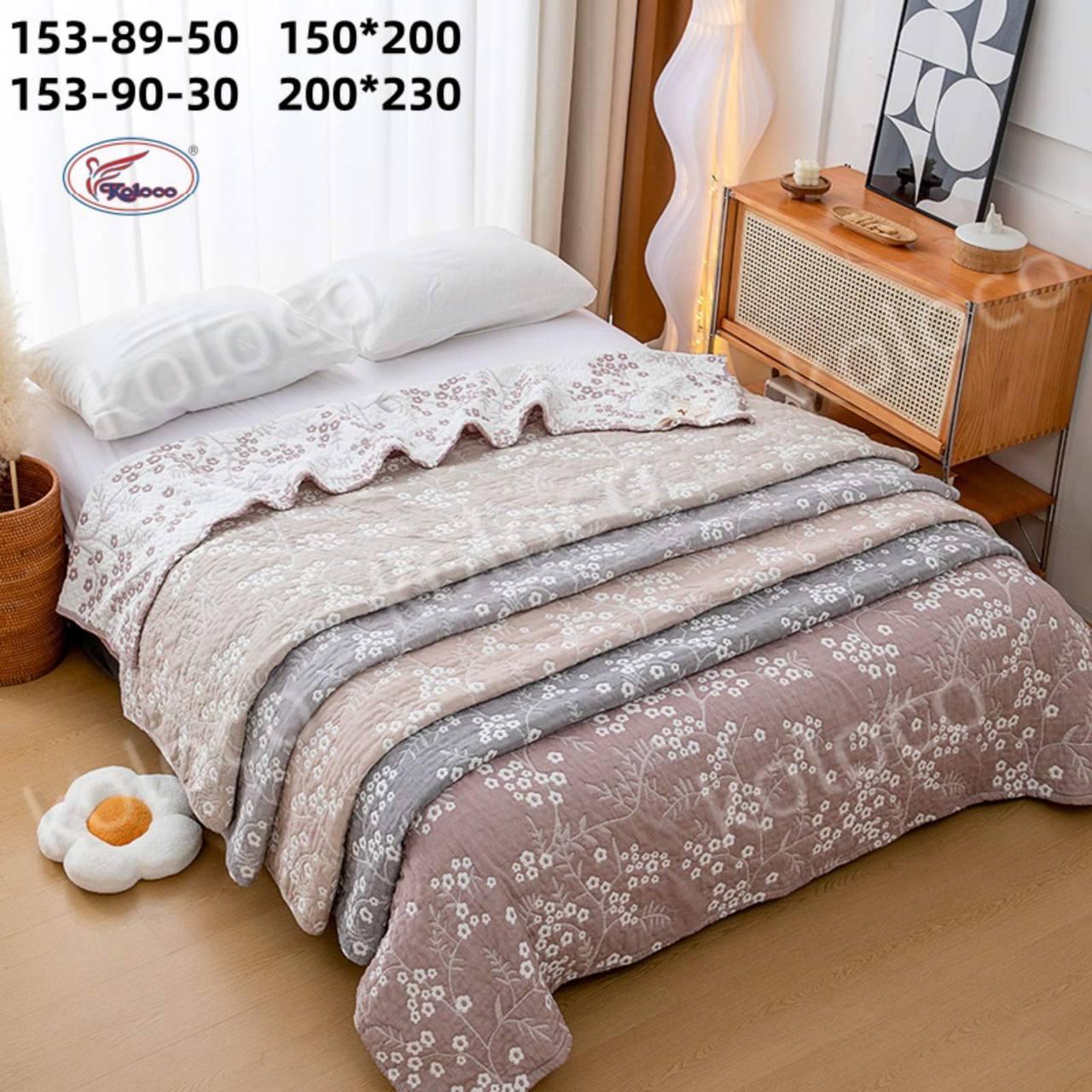 Муслин - прочный, тонкий и многофункциональный материал, отличается природным происхождением и особыми свойствами. Муслин ‒ это тонкое и мягкое полотно, которое создается при помощи полотняного переплетения. Из-за того, что ткань отличается легкостью и воздушностью Муслиновое покрывало всегда украсит Ваш дом и создаст уютную атмосферу. Это покрывало абсолютно экологичное и гипоаллергенное. Прекрасно стирается и очень быстро сохнет. Смотрятся богато и изыскано. Покрывало на кровать является одним из самых главных элементов в декоративной отделке вашей спальни. Оно способно выделить общую стилистическую направленность в оформлении и стать заключительным элементом в достижении полной гармонии. Выбирая покрывало на кровать, вы приносите в свой дом уникальную атмосферу порядка, уюта и изысканного, неповторимого комфорта. Это покрывало может служить и как летнее одеяло Характеристики набора: Покрывало Размер: Евро 200х230 см Материал: хлопок